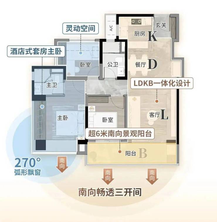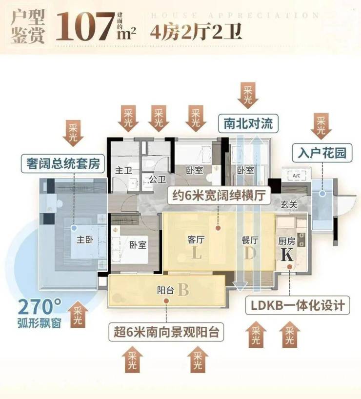 阳台、飘窗、花池赠送,户型使用率超100%;
