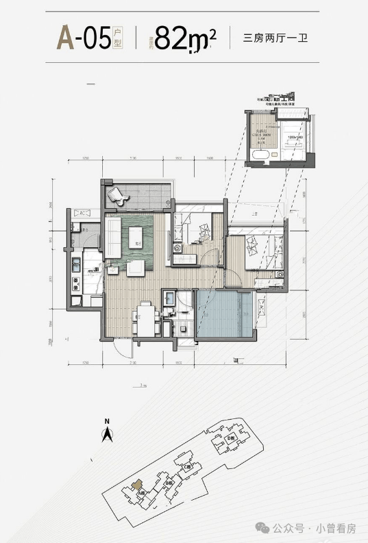 85㎡三房两厅一卫与 82㎡户型布局相似,总价约 423.3 万元 / 套,剩余房源主要在高楼层,采光条件更佳。