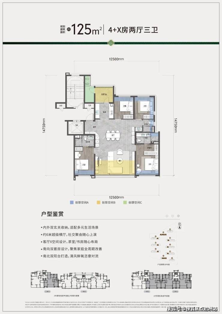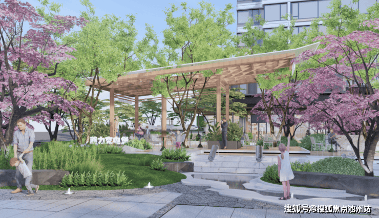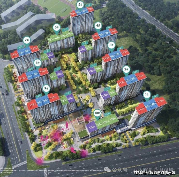 在建筑排布上,10栋南北向住宅中庭嵌入11层洋房,形成“外高内低”的布局。高层住户推窗见绿,洋房业主私享园林庭院。