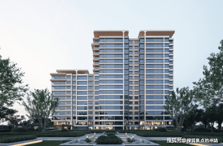 采用类公建化外立面设计,搭配全封闭玻璃幕墙,造型上采用双拼处理和圆弧倒角,弱化建筑棱角,品质感拉满。