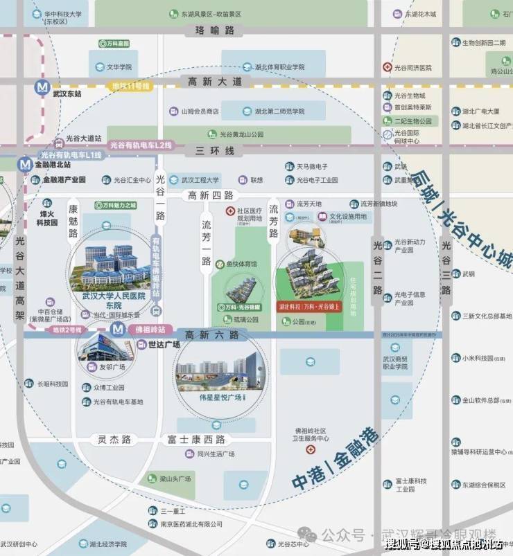 地块位于光谷的金融港板块,高新六路以北、流芳路以东,2号线佛祖岭地铁站东边1公里距离。