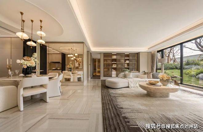 约13.7米面宽如展开的画卷,约6.9米宽厅成为家庭剧院的天然舞台。晨光中,孩子在落地窗前追逐打闹;午后,女主人的瑜伽垫与先生的阅读角共享同一片阳光;夜幕降临时,投影幕布从缓缓垂落,将客厅化作星空影院。