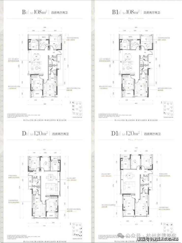 更大一些的户型如建面约108㎡、120m²的四房边套设计,不仅面积宽敞,南向双卧室+客厅大飘窗的设计也提升了居住舒适度。✅ 杭州棠悦芳华轩-售楼处电话:400-678-8669转9999【售楼处已认证】✅✔️