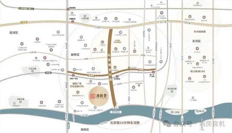 项目毗邻沿江路,邻靠北京路地铁站,6号线、2号线、1号线三地铁交汇,北京路、海珠广场、内环路坐落在旁,生活出行无忧,轻松畅达广州核心区域。