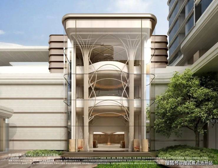 汲取九溪烟树的溪谷景观为灵感,化为专属业主的溪水幽谷,顶部扇形华盖造型,尊贵气度油然而生。