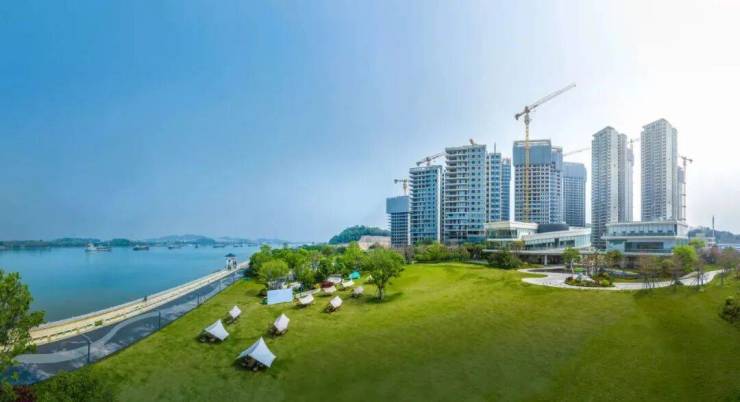 从项目门口约3.5万㎡的静谧滨江公园漫步而出,宽约570米巨幕江景在你眼前铺开,比汇悦台的江岸线,都要宽。