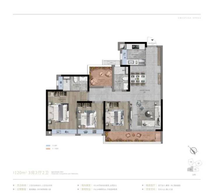 项目在售的户型,从建面约120㎡的三房,到建面约220㎡的奢阔五房,都能随心挑选。