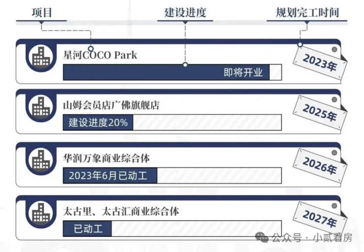 附近有全国规模最大的万象城,已于2023年6月开工,预计26年正式营业,太古汇购物中心,太古里滨水街区2022年9月动工,27年营业,小区也会配建4.3万方社区商业。