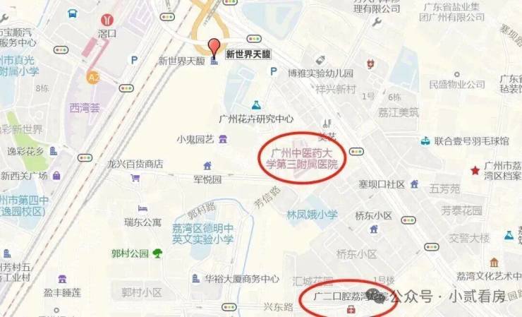 3公里内有5所三甲医院,广州中医药大学第三附属医院{芳村院区},广州医科大学附属第一医院,广东省中医院芳村医院等等。