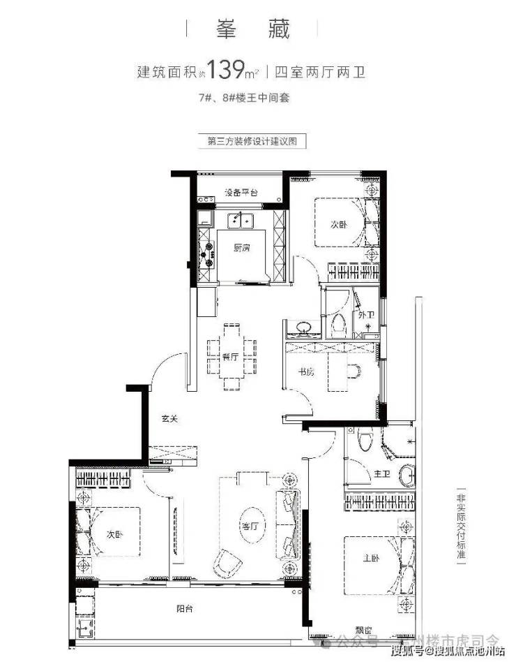 3.户型特点:户型设计1条过道,过道面积紧湊,空间少不浪费。4室比较适合改善型人群,2卫的设计,解