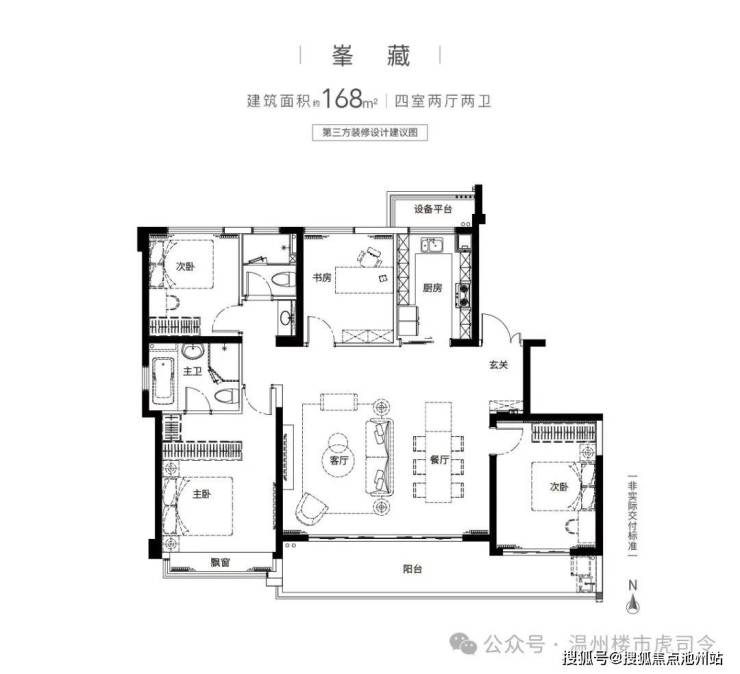 1.空间布局:168平户型面积约为168.00平,该户型在本市在售4室户型中面积较大,标准层高设计。
