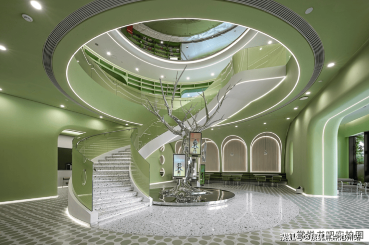 红砖质感与现代玻璃、金属材质巧妙融合,营造强烈的视觉冲击力;拱门元素的运用,使空间呈现若隐若现的层次美感,既保留了历史肌理,又赋予建筑艺术格调。