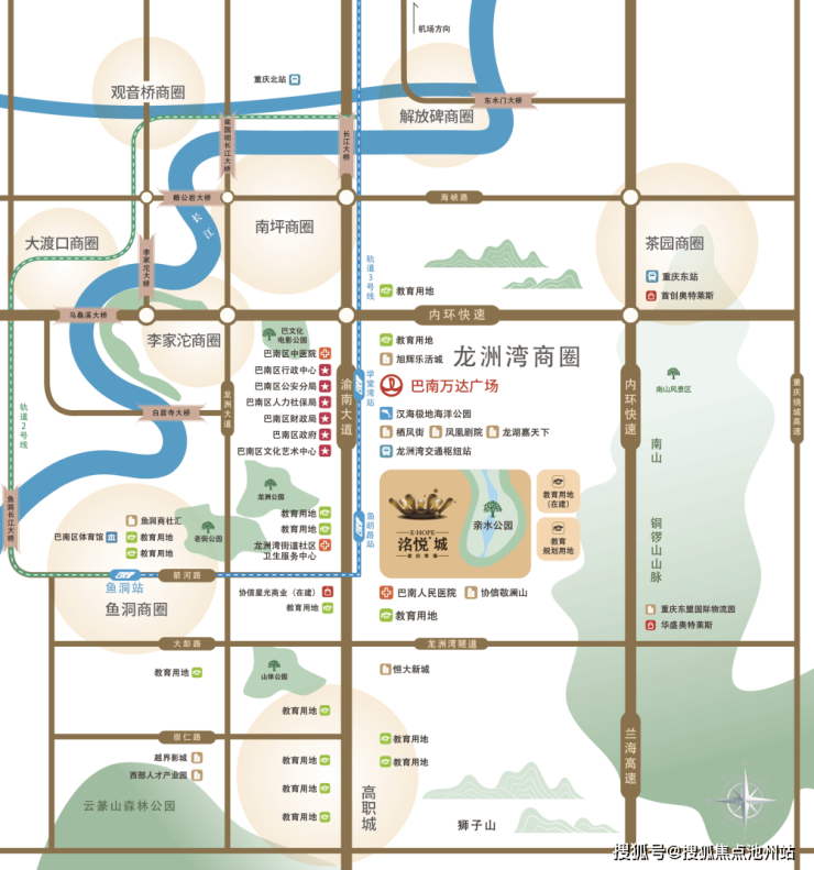 项目紧邻轨道3号线鱼胡路站,依托渝南大道等城市主动脉,通达性优越;既能覆盖周边10余个成熟社区、数所高职院校,又坐拥巴南区人民医院及华熙LIVE·鱼洞体育馆等配套,汇聚庞大稳定消费人群,商业潜力显著。
