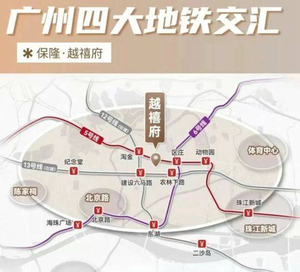 越禧府坐拥越秀核心区顶级交通网络。项目距离已运营的地铁5号线与6号线交汇站——区庄站约500米,步行8分钟内可达;周边更有12号线淘金站、13号线农林下路站(均在建),预计2025年底开通,届时将形成四地铁站环绕的出行格局,轻松换乘通往珠江新城、天河、琶洲、白鹅潭等核心板块。自驾方面,项目紧邻环市东路、东风东路、东濠涌高架等城市主干道,10–15分钟畅达广州各大政务与商业中枢,通勤效率极高。
