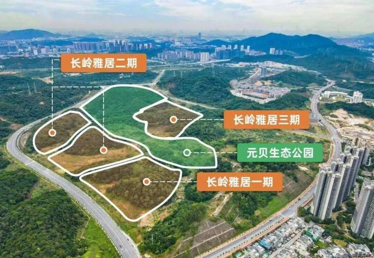 项目规划 5 大地块,环抱元贝生态公园而建,内园外山,帽峰山、萝峰山风景尽收眼底,东南向林地未来或将规划国家荔枝公园。