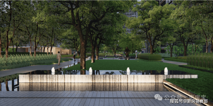 景观上: 因为这得天独厚的天赋,在景观打造上,社区内的景观体系与家门口的水岸滨河景观轴能够相互融合,开发商将自然的水岸植入社区景观营造中,让业主在家门口就能拥有沉浸式的度假风景。
