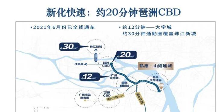 好处是项目自驾还算方便,目前南大干线已经全线开通,去往南站、万博、大学城、创新湾等地都很快,比如去往琶洲,仅仅26分钟的车程时间
