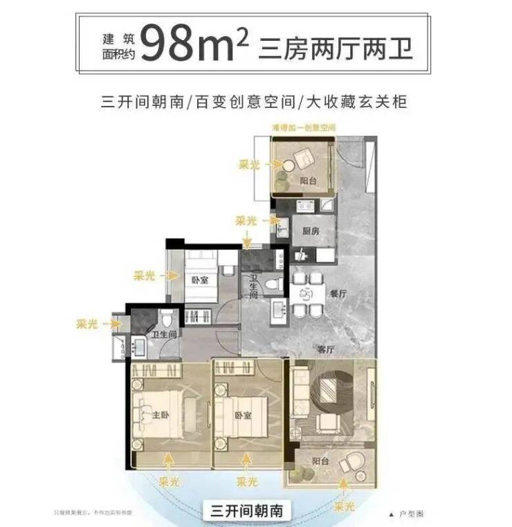 【高层户型鉴赏-超95%南向户型设计,高拓展高赠送】