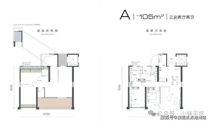 这套建面约105㎡户型,甚至可以改造出约7.4米横厅、约4.5米厨房岛台、约23㎡主卧套间,实现130㎡户型才能拥有的改善级享受。
