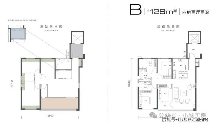 建面约128㎡户型,可以实现约7.9米大横厅、约52㎡一体化公区,堪比150㎡大平层;