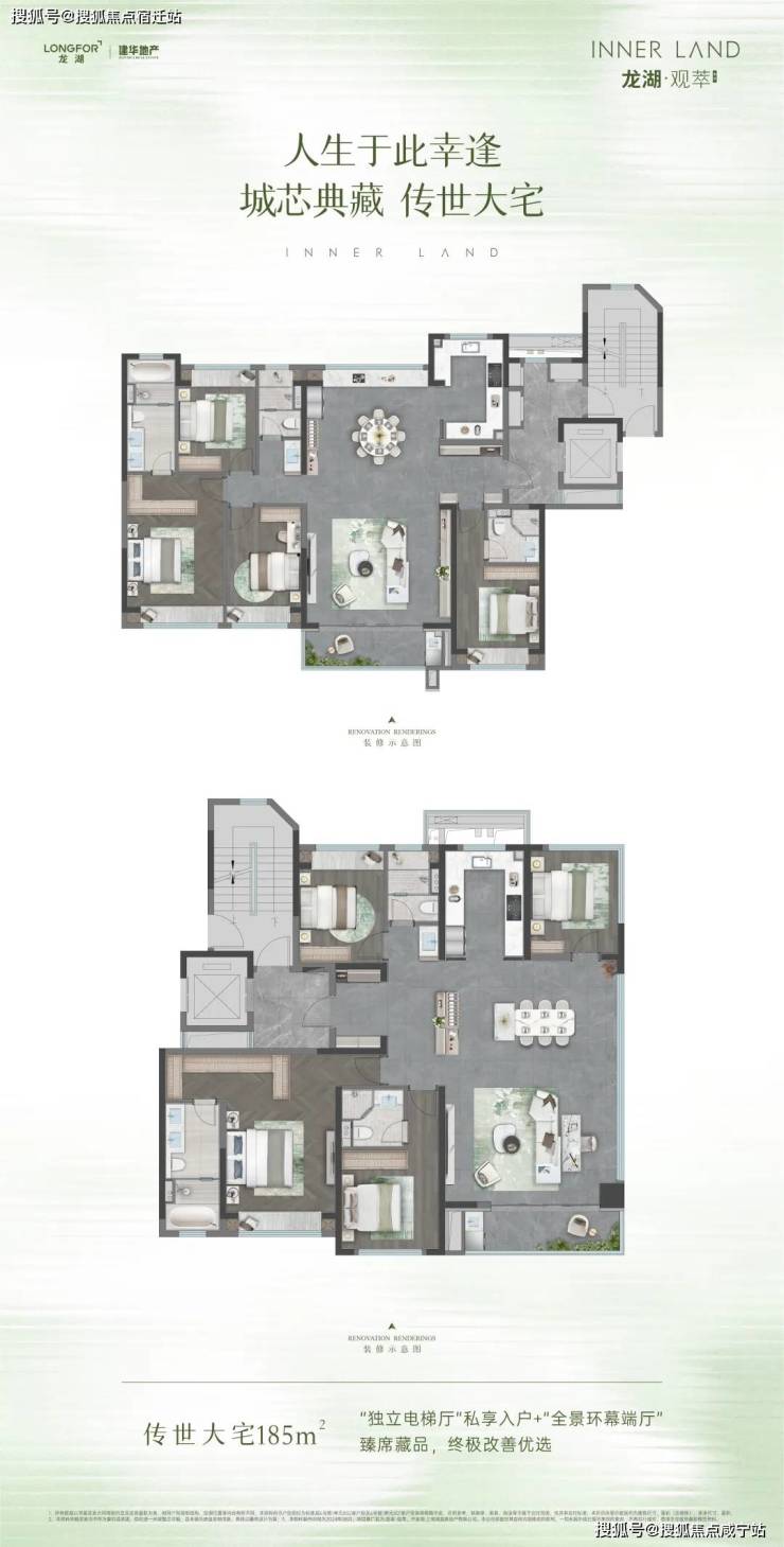 产品面积覆盖约107-185平,改善户型占比80%以上,堪称是户均“大平层”!