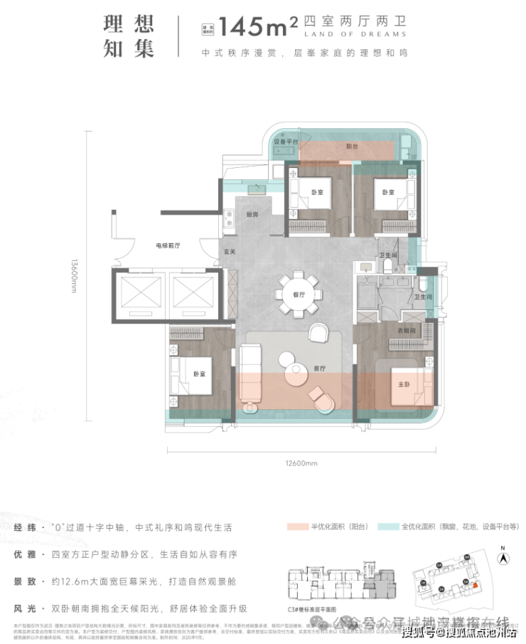 武汉·理想之地包含了三个地块,其中将C地块作为首发。从公开信息来看,C地块设计了建面约130平-225平房源。