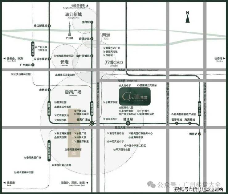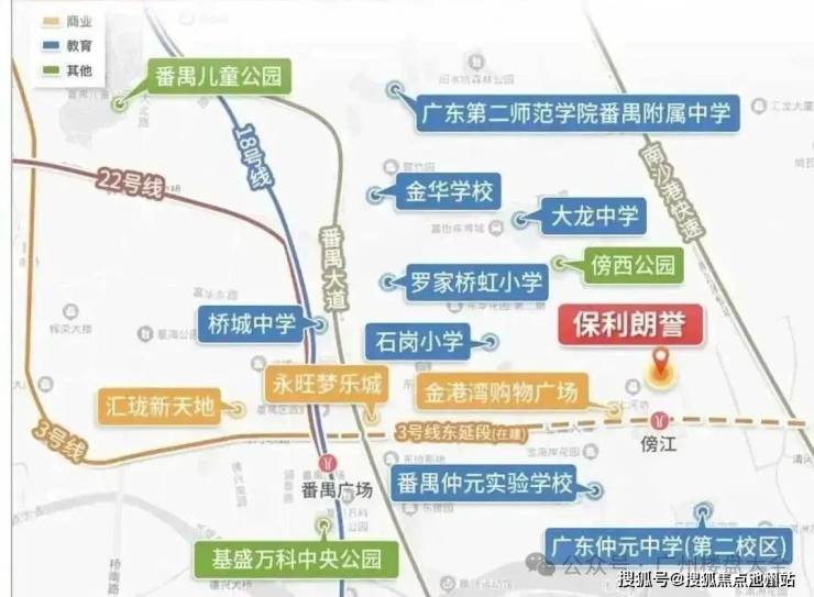 1、交通:保利琅誉,位于“番禺广场+番禺客运站”双TOD上,与3号线东延段傍江站(已运营)直线距离约590米,一站即达番禺广场站:地铁3号线、18号线、22号线、3号线东延段(已开通) 、17号线(规划中),五轨交汇,一站畅行琶洲,两站通勤珠江新城。