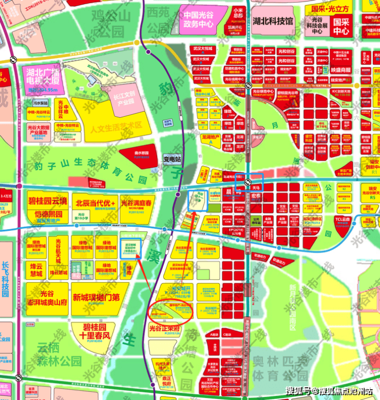 项目处于豹溪路和流芳园横路交汇,光谷中心城南区。目前周边配套较弱,周边规划主要以住宅为主,这也是号称为八块腹肌的首个规划出炉项目。
