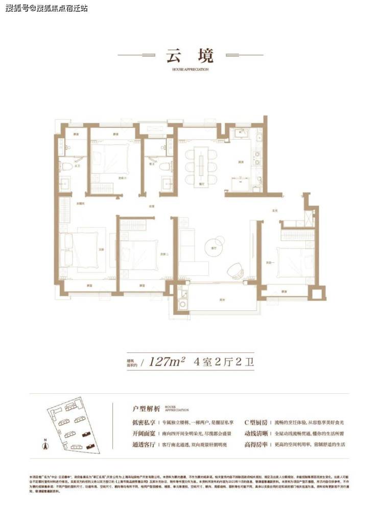 建筑约127㎡的「云境」空间内,四开间南向结合舒朗的方厅,大尺度的面宽让光赋予了生活更多的灵感。