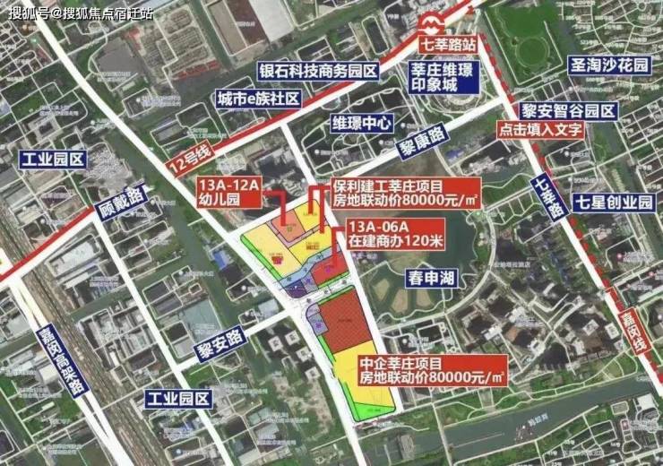 地块北面就是同一天拿地的保利发展&上海建工莘庄社区MHP0-0201单元13A-10A、13A-13A地块,房地联动价也是80000元/㎡。