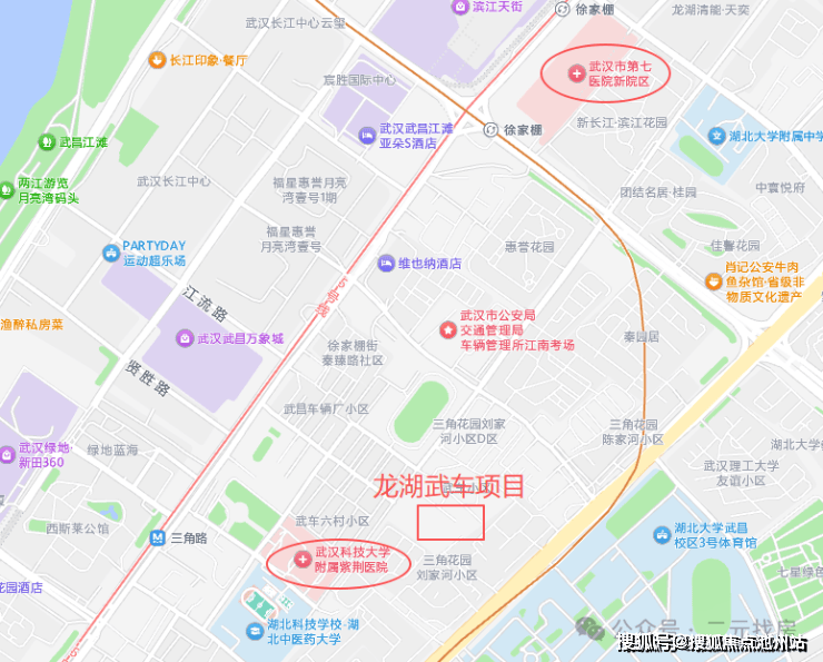 医疗配套:项目最近的是武汉科技大学附属紫荆医院(综合性三级医院),不到200米;距离武汉市第七医院新院区(综合性二级甲等医院)约800米,两所医院都是综合医院,看病比较方便。