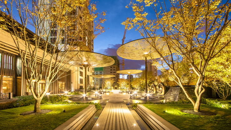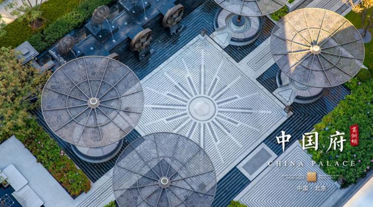 葛洲坝北京中国府的铜伞,灵感来自古时皇家出巡的华盖,并由国际景观设计大师结合以传统文化礼制专为中国府项目量身定制。由于巨大的体量,结构、设计、图纸、打样均经过了数十次的推敲和钻研,终于得以落成。