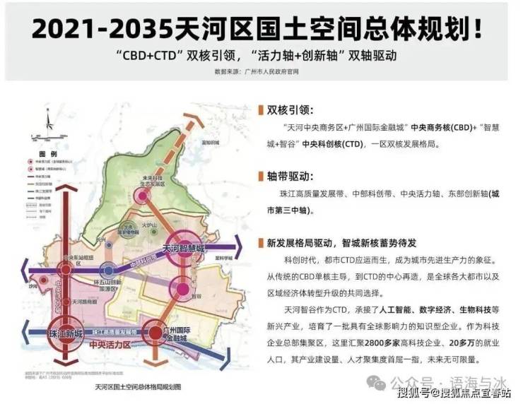 政策先行:在“十四五”规划中,天河的CTD中央科创区被提升至与CBD中央商务区同等的重要地位,形成天河的双核战略。