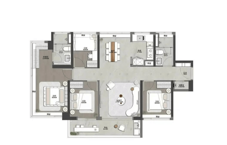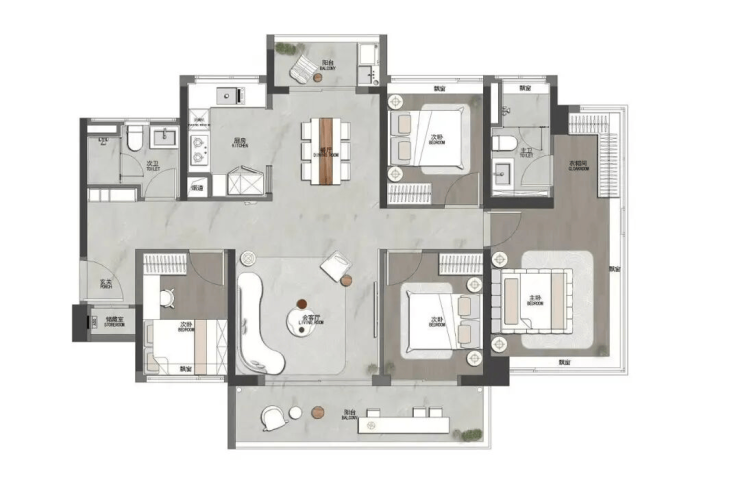 建面110平,就是5-6栋102平一样格局,也是飞机户型,相当于放大版,110的多了一个储物间,客厅房间会大点,三个次卧面积都超过9平。