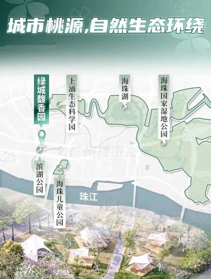 项目背靠河涌,将打造一个滨河公园,小区南面就是海珠儿童公园,周边还有海珠湿地、海珠湖公园等生态景区。