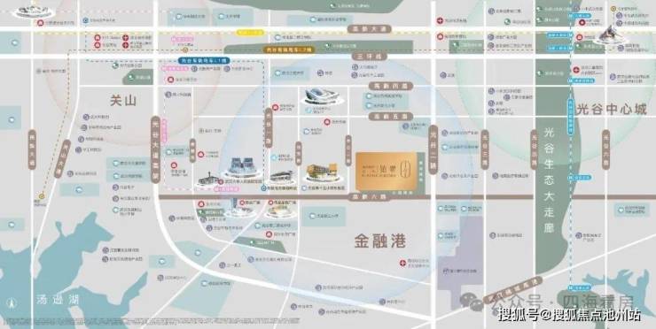 产业的聚集,人口的涌入,在光谷蓬勃发展的30多年中,已构成一个衔接紧密、环环相扣的“金三角”——前商-中港-后城,作为“金三角”关键过渡点与支撑点,金融港已成为具备城市生活资源精粹和高尚人文内涵的居住区域。