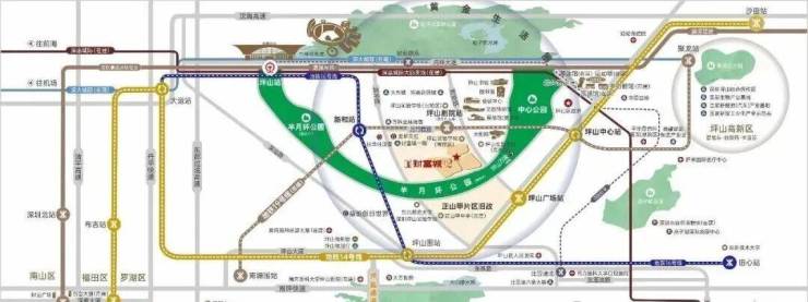 陆路交通:坪山大道、南坪快速、盐坪通道、沈海高速等主干道串联全市,自驾30分钟可达福田中心区,1小时覆盖东莞、惠州等临深区域,形成“半小时通勤圈”,尤其适合南山、福田等核心区外溢的刚需和改善型客群。