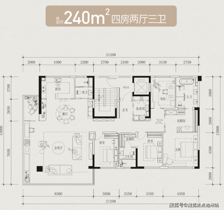 它的南向21.2米面宽就不说了,它的奢华主卧套就不说了,它的独立家政间就不说了,它的南向双子星套房不提也罢,它的三明卫不足挂齿.....