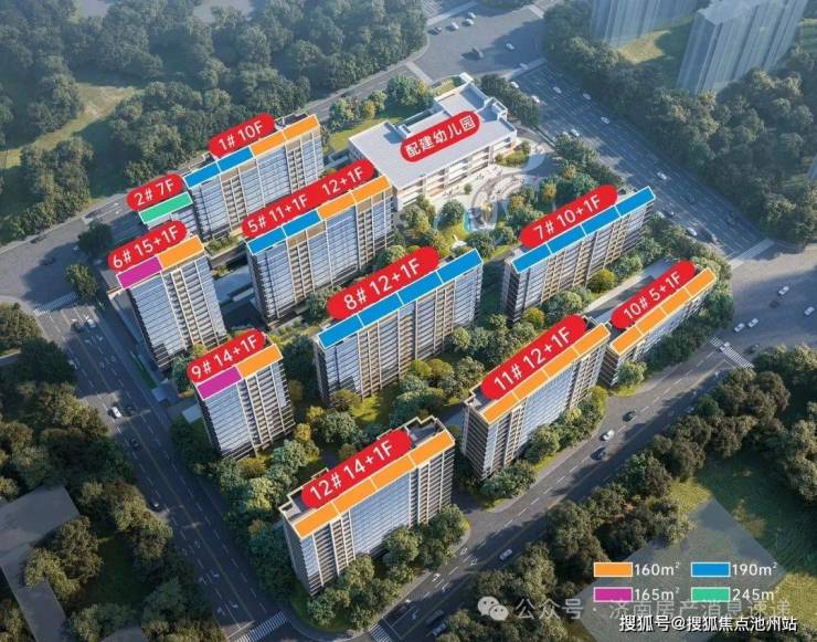 地块容积率2.1,规划10栋住宅共363户,1栋5层洋房、1栋7层洋房、2栋10层小高层、3栋12层小高层、2栋14层小高层、1栋15层小高层,户型面积155-240平方米,户均面积约163.4平方米,普通层层高3.1米,顶层层高3.3米