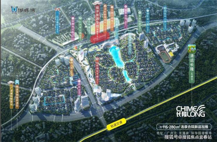 项目建设了约7.6万㎡的城市综合配套中心,不仅规划有五星级度假酒店、蝴蝶之眼亲水餐厅等景区豪配设施,还引进度假别墅酒店及康养度假中心。