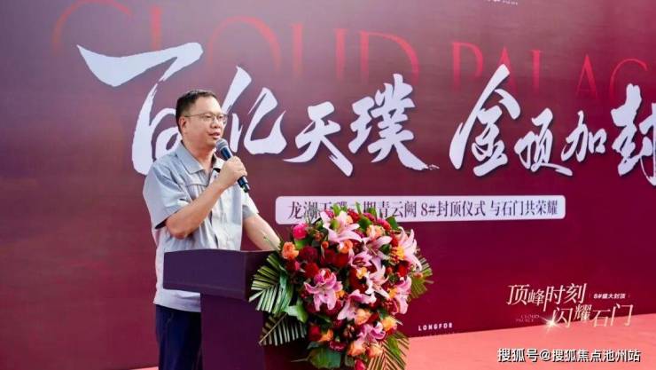 七月流金,序写盛景。7月30日,龙湖二期青云阙二标项目现场,彩旗与晨光交相辉映,掌声伴着捷报齐鸣——8#楼封顶仪式荣耀启幕。龙湖集团石家庄分公司项目负责人纪文强、工程负责人段鹏飞、天璞项目营销负责人张自豪,河北中原龙湖天璞项目监理总监牛良,中天建设集团石家庄分公司经理楼晓东、项目经理俞杭锋以及龙湖项目管理团队等80余人,共同见证这一辉煌时刻。