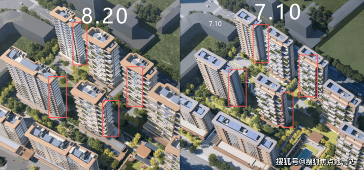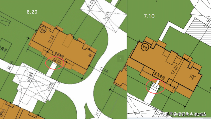 5、楼间距微调:根据观察,8月公示图楼间距有打不通程度微调,一般在20cm之内,调整不大。