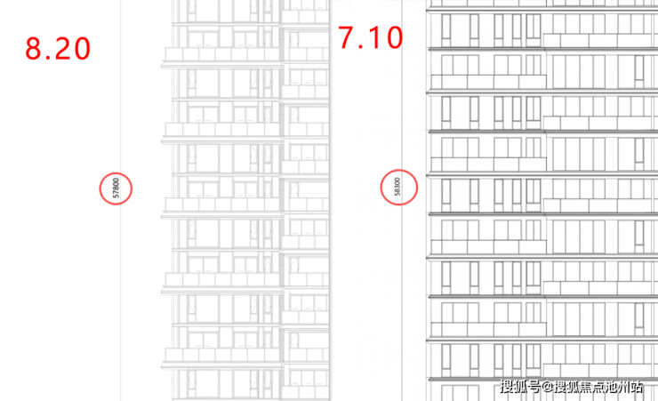 7、同样以3#楼王为例,8月版总高57.8米,而7月版本是58.3米,减少了0.5米;调整有限;