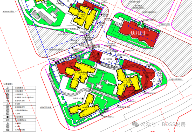 南地块配建3栋51-52层高的住宅,会所等设施均在南地块