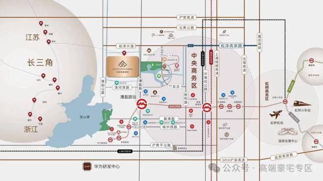 交通:以远见占位,纵享高效交通体系,20 分钟直达虹桥枢纽,1 小时辐射长三角重点城市,2-6 小时直达国内主要城市。