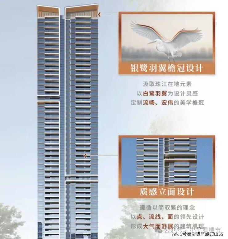 此前,这种立面一般会出现在10万+/平的项目,而珠江春,结合银鹭羽翼檐冠设计,勾勒出灵动通透的外立面,沉稳又不失大气。