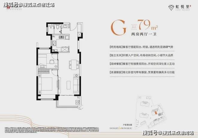 建面约79㎡2房G户型: