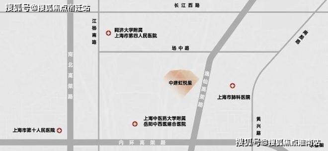 项目是真正中环旁新盘,直线距离中环仅约600米;同时这一段中环和内环紧挨着,因此中建·虹悦里直线内环也仅约1.2公里;此外,东侧还邻近逸仙高架路