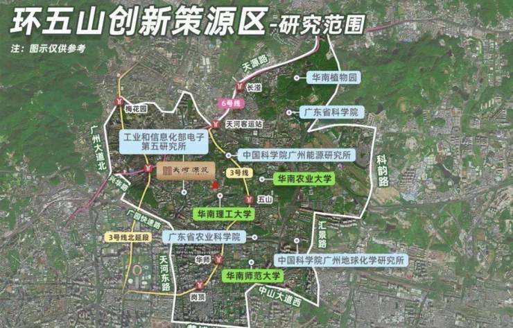 天河源筑位于东莞庄,号称天河北后花园,占位“环五山”创新策源区,距离珠城仅约4.5km,市中心核心的地段,已经足以令项目从一众新盘中脱颖而出。论规划,环五山创新策源区聚焦“人工智能+数字经济+科技创新”,关乎广州的下一个十年发展。