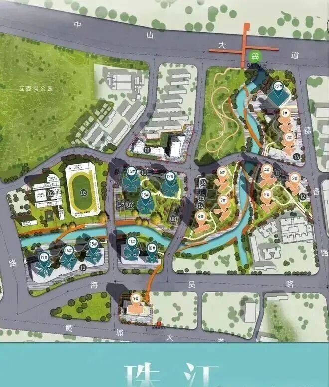 项目共分为多个地块进行开发,其中首推的是融资区 3 号地块的 6#、7#、8# 栋住宅。3 号地块位于项目的核心位置,距离珠江最近,拥有最佳的江景视野。地块内规划了约 3 万平方米的中央园林景观,种植了多种名贵的树木和花卉,打造了四季有景、步移景异的园林环境。同时,地块内还设置了儿童活动区、老年活动区、运动场地、休闲廊架等多种社区配套设施,满足不同年龄段居民的生活需求。